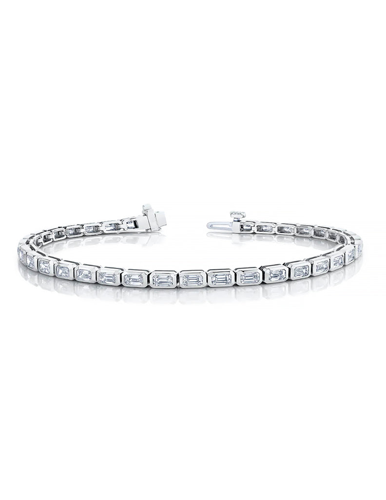 Bezel Set Emerald Cut Diamond Tennis Bracelet
