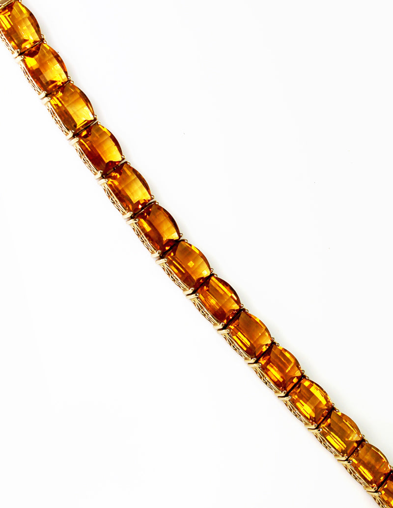 14K yellow gold citrine line bracelet with fantasy cut citrines.
