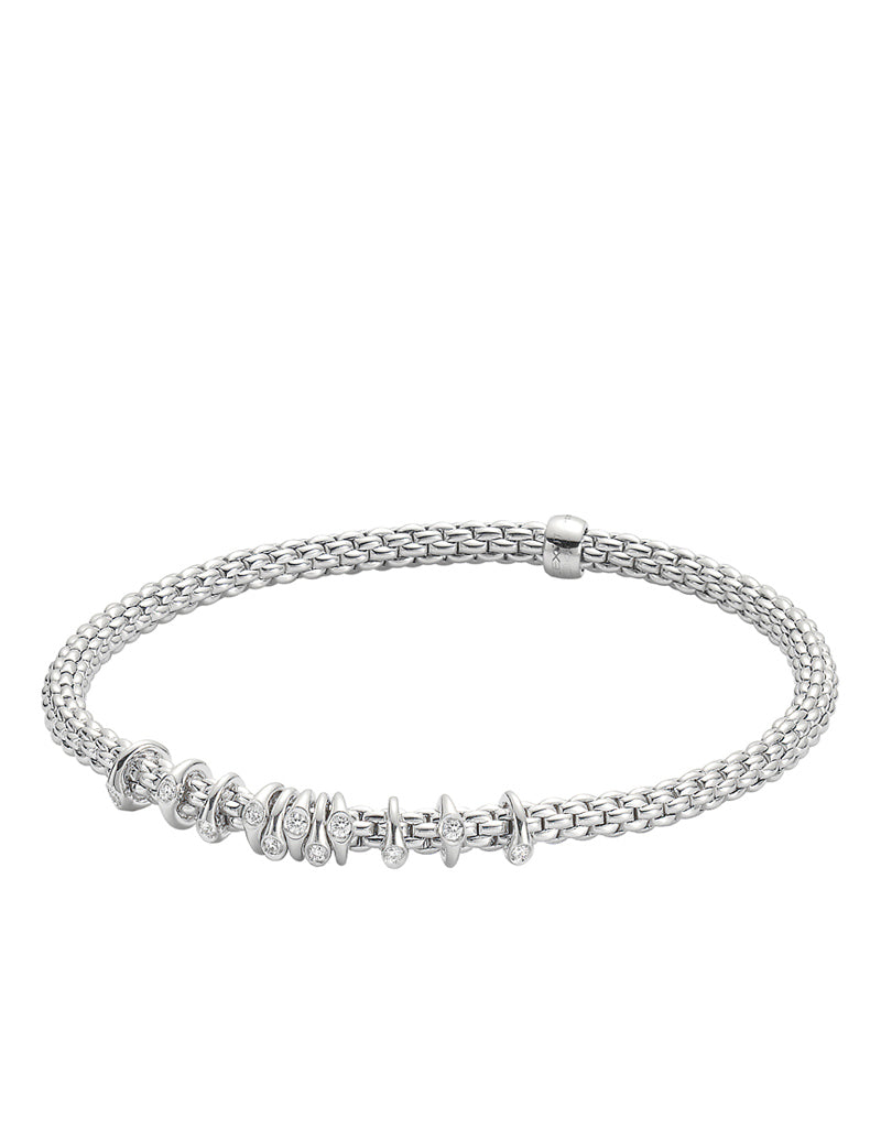 18K white gold flex'it bracelet with diamonds totaling .15cts.