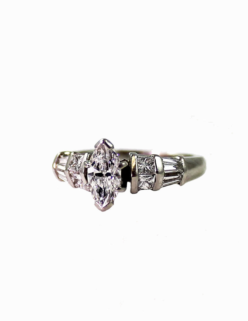 The marquise is .70ct.; the other diamonds total approximately .60cts.