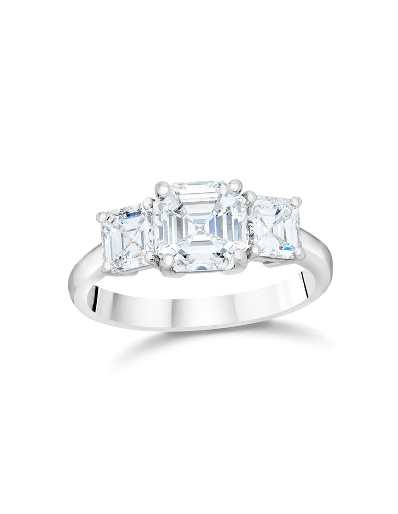 Three Stone Asscher Cut Diamond Engagement Ring