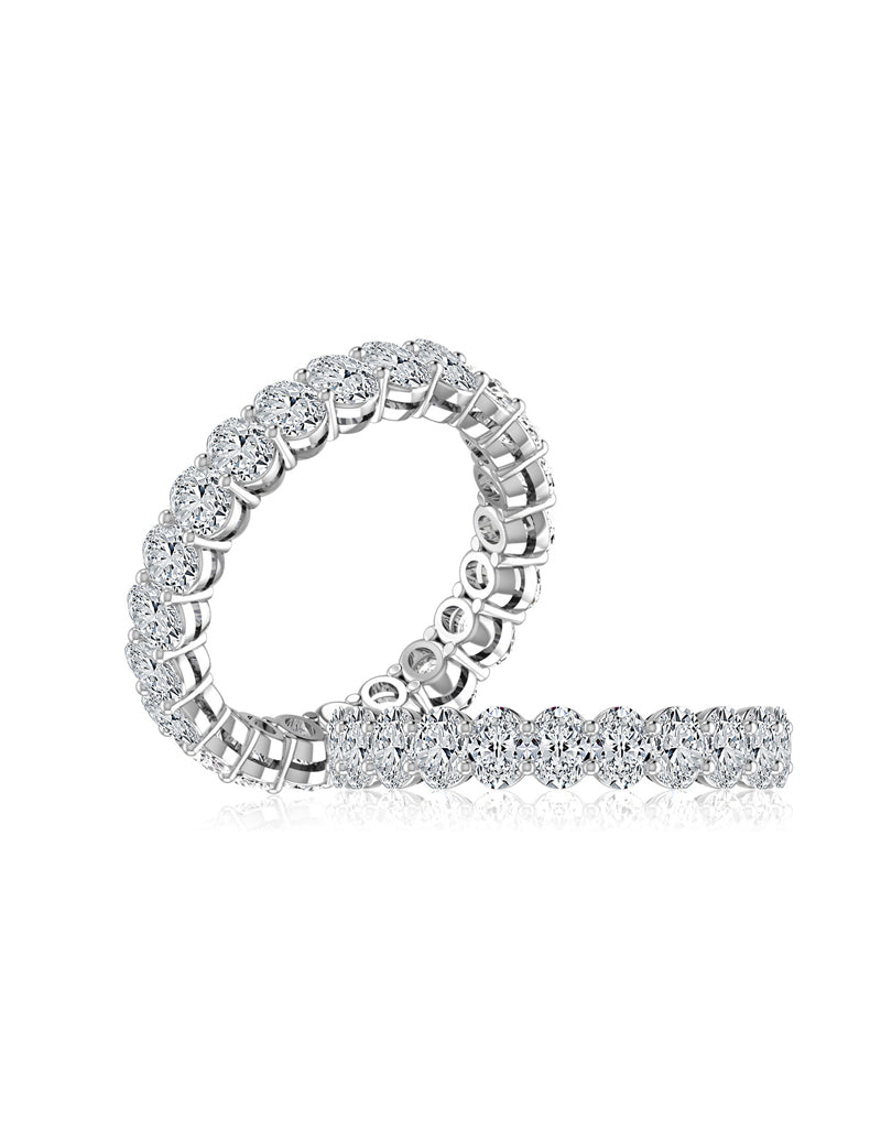 This anniversary band features oval diamonds in a basket setting all the way around.