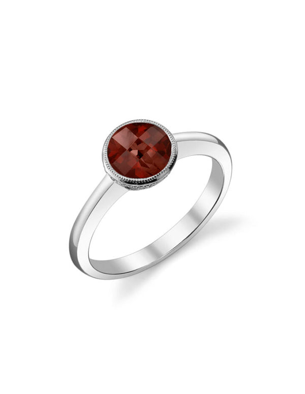 14Kt white gold ring garnet gemstone: 7.0 mm Round Checkerboard Cut