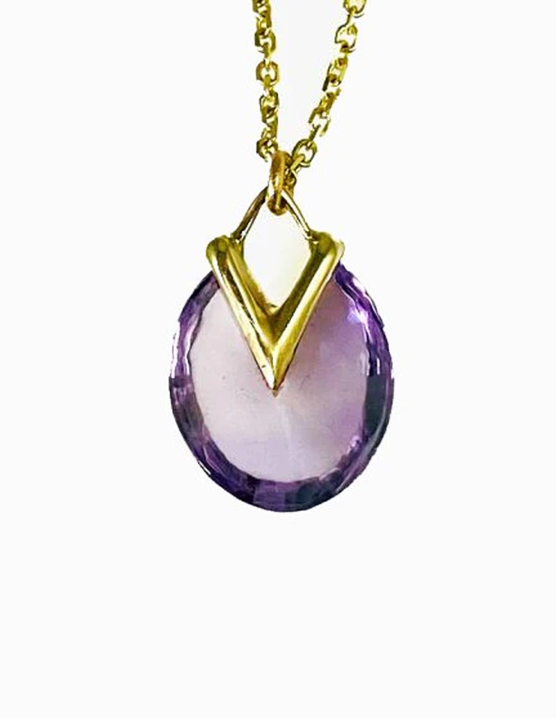 14K yellow gold Lily Pad pendant in amethyst by Rachel Atherley.