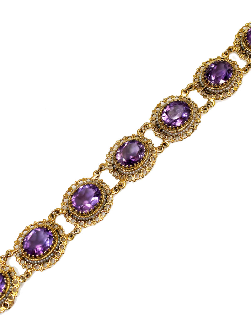 Vintage Amethyst and Seed Pearl Bracelet