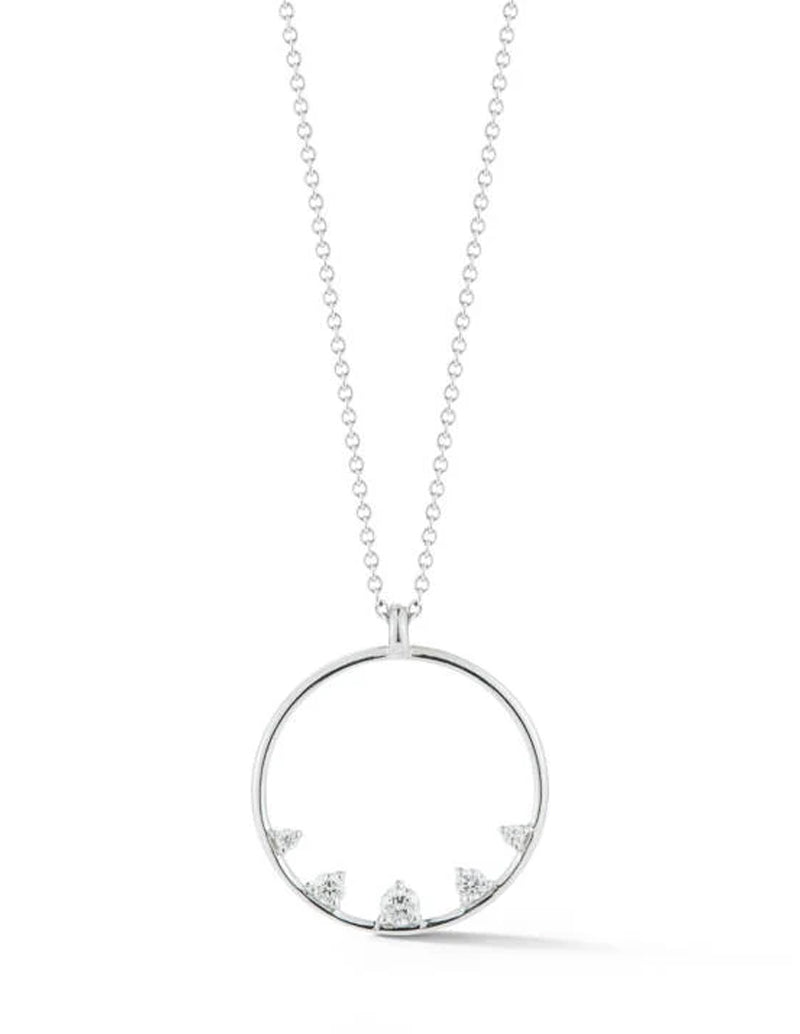 14K white gold Venetian circular diamond pendant necklace with lobster clasp.