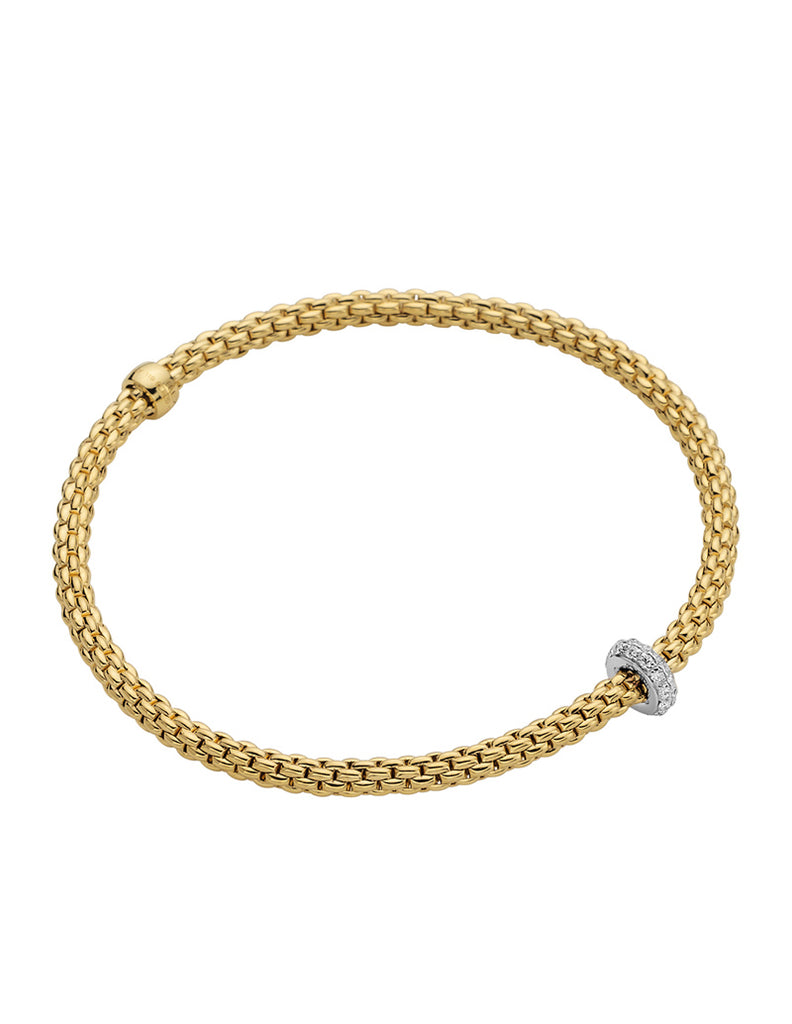 18K yellow gold Prima bracelet with one pave diamond rondel.