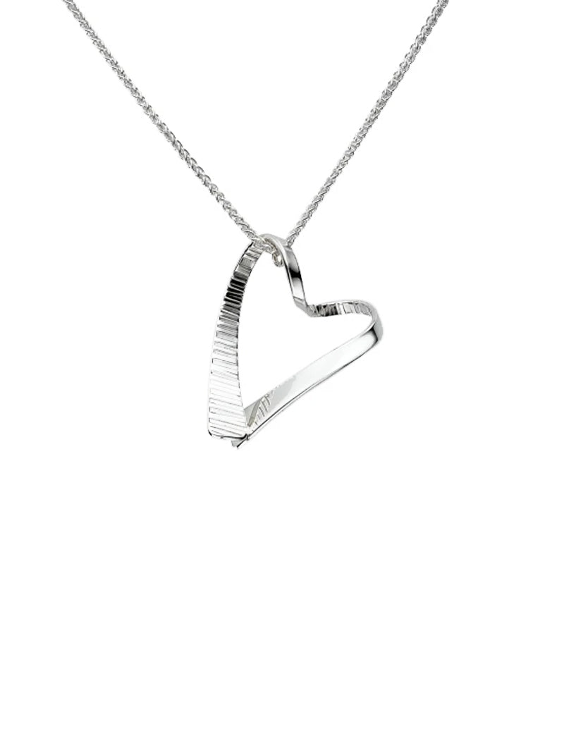 Sterling Silver E.L. Designs Cherish heart pendant on wheat chain. Crafted from the finest metals, this pretty piece is a thoughtful way to elevate their look while showing how much you care.