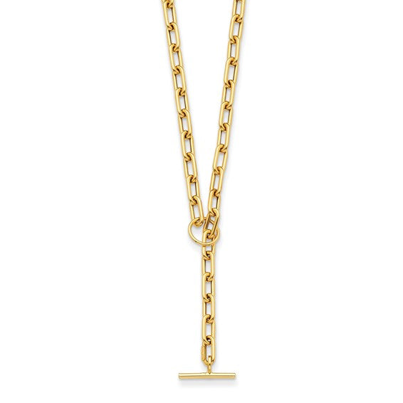 14K yellow gold paperclip chain with toggle clasp.