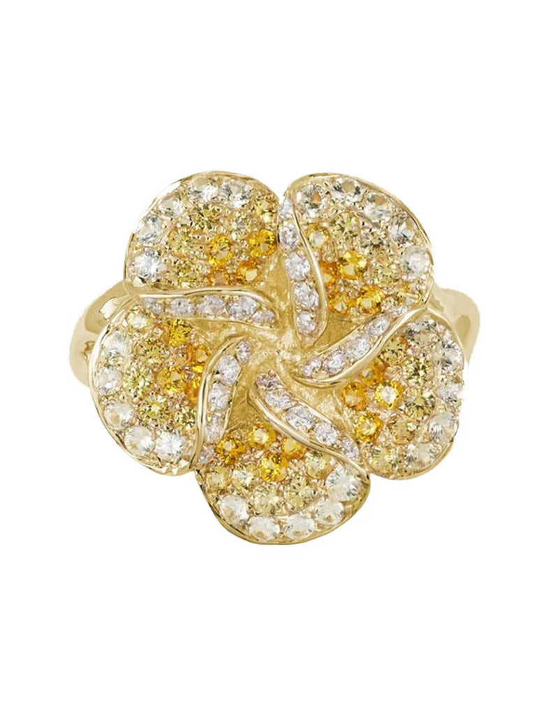 14K yellow gold flower yellow sapphire pendant with diamond accent on an 18" adjustable chain.