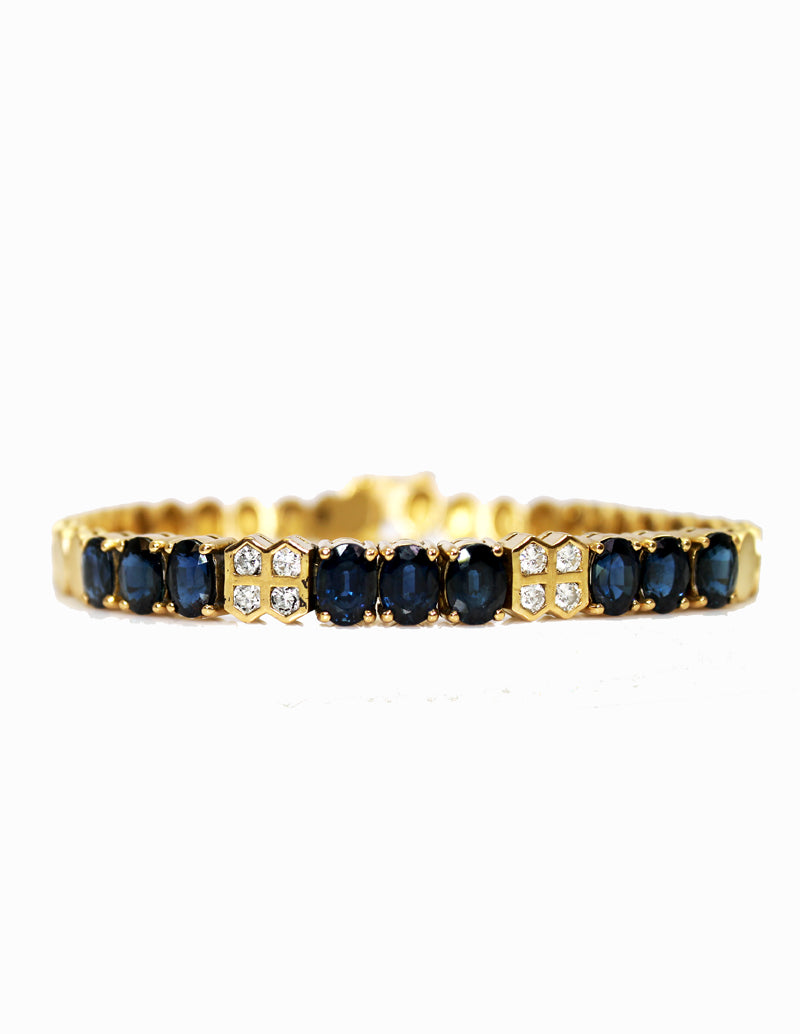 18K yellow gold bracelet with oval sapphires and diamonds.