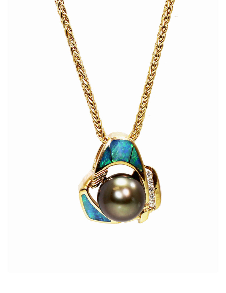 Estate Tahitian Pearl and Opal Inlay Pendant