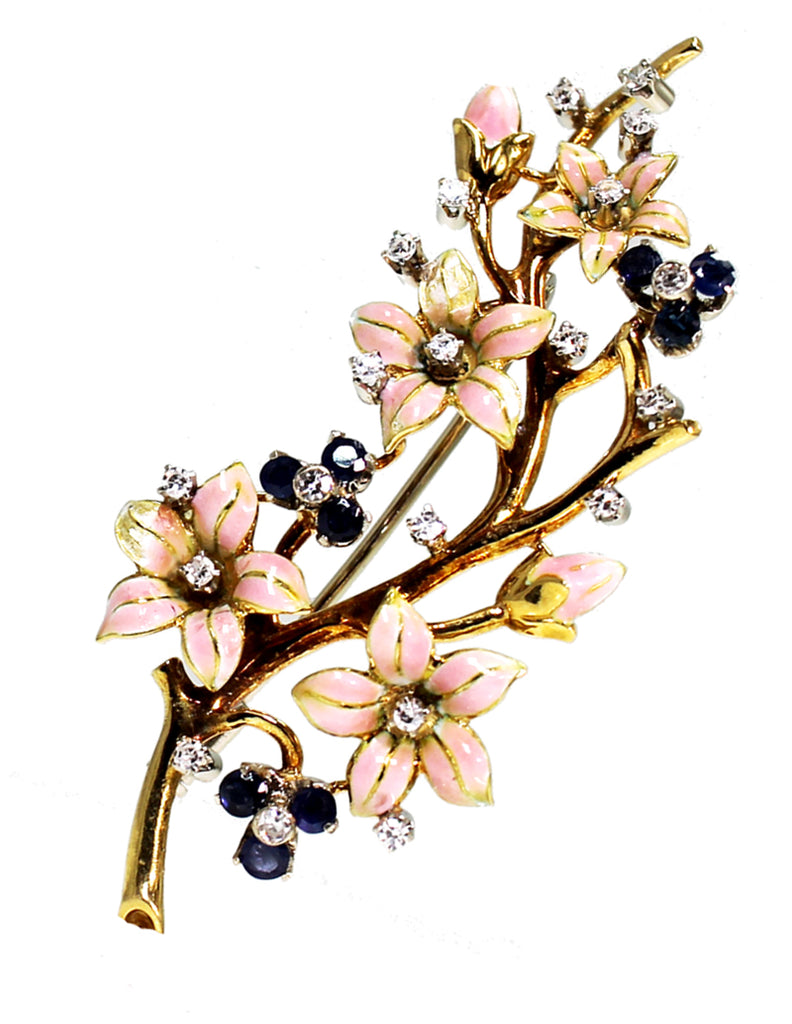 Estate Tiffany Sapphire and Diamond Flower Brooch