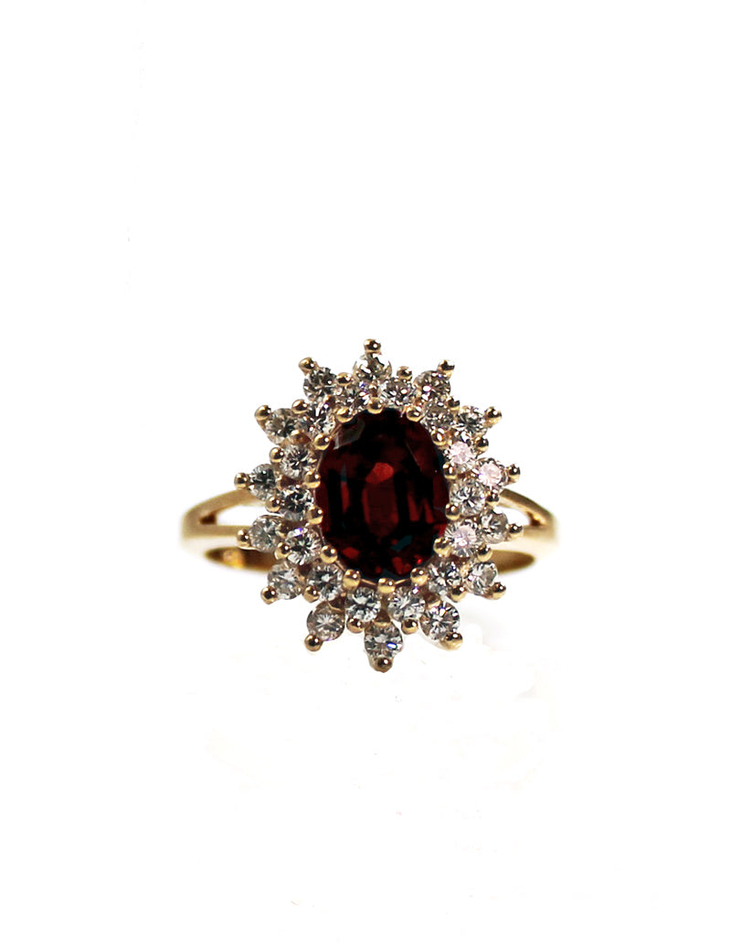 Estate Garnet and Diamond Ring