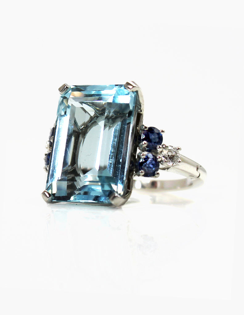 ZB Vintage Platinum Sapphire and Diamond Ring
