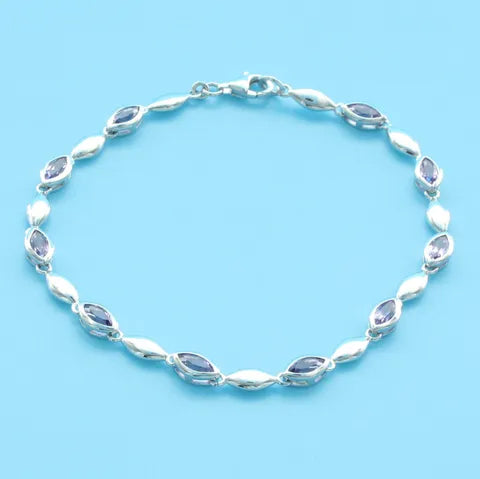 Sterling silver alternating amethyst bracelet with lobster clasp.