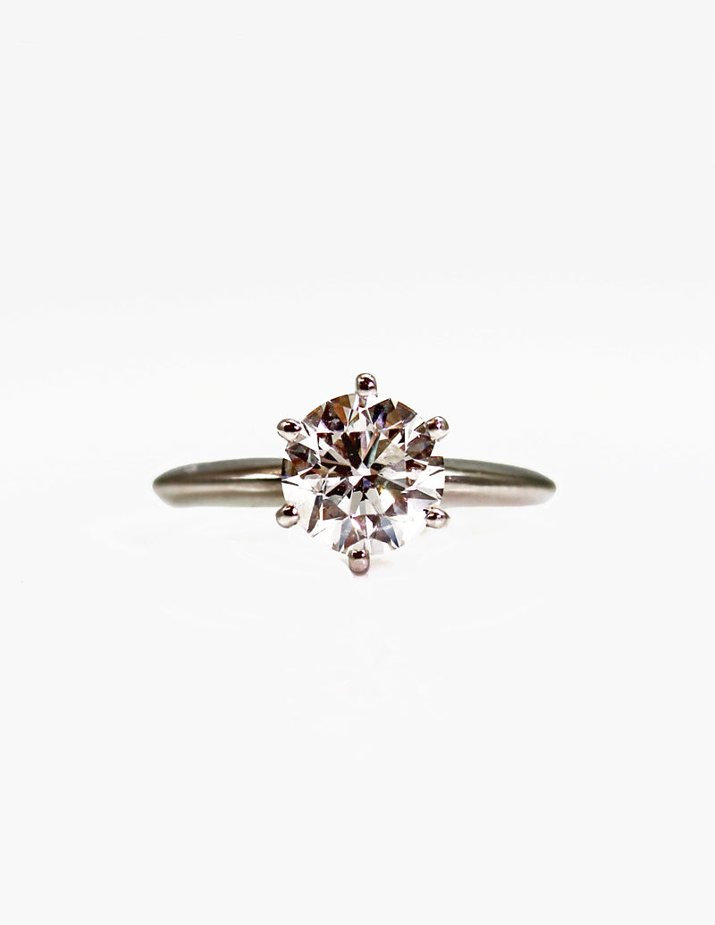 Platinum solitaire with 1.40ct. round brilliant diamond, G color, SI1 clarity.