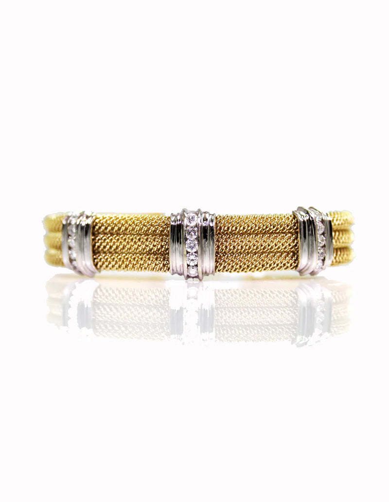14K yellow gold flexible bracelet with white gold diamond accents.