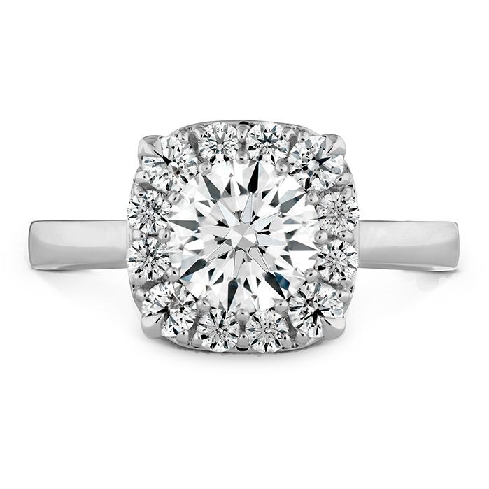 The HOF Signature Custom Halo Engagement Ring creates the illusion of a cushion cut center diamond, with the brilliance of round diamond.