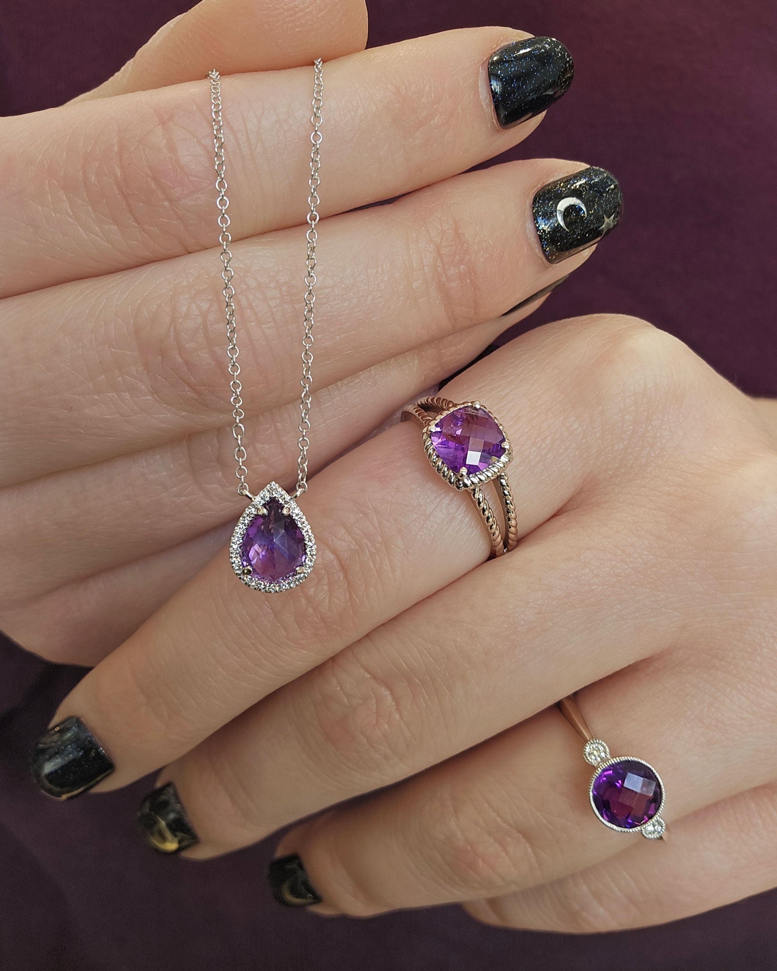 Priced in 14K white gold, 1.05ct amethyst, 0.06ctw diamonds, 16-17-18".